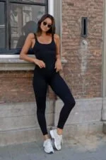 Trendy, stylisch und bequem in einem! Tragen Sie diesen Einteiler beim Workout oder spielen Sie mit den Trends und stylen Sie ihn mit einem schicken Blazer! Dieser Einteiler kann nicht durchhängen, hat eine schlankmachende Wirkung und ist aus einem dehnbaren und gerippten Stoff gefertigt. Er eignet sich für alle Ihre Aktivitäten, wie zum Beispiel eine Wanderung, eine Laufeinheit oder ein Krafttraining. Was kann man sich mehr wünschen?
