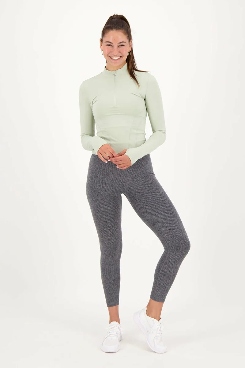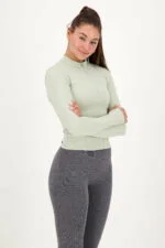 Dieses sportliche Langarm-Top mit ¼-Reißverschluss am Hals eignet sich für ein gutes Lauftraining oder andere Outdoor-Sportarten. Am Reißverschluss befindet sich eine Schutzkappe aus Stoff, die verhindert, dass der Reißverschluss am Hals/Nacken scheuert. Das Top hat lange Ärmel mit Daumenöffnungen und sitzt dank der schönen femininen Linien auf der Vorderseite gut.