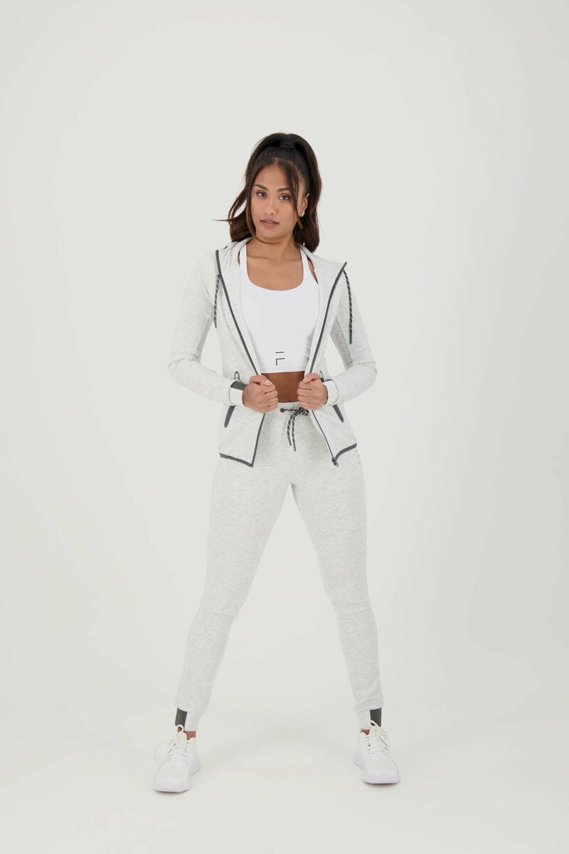 Eine himmlische Kombination! Das ist unser technisches Rüstzeug auf jeden Fall. Die dazu passende graue Jacke liegt gut am Körper an und ist innen schön weich. Die Jacke hat zwei Vordertaschen, die mit einem Reißverschluss geschlossen werden können. Die Weste hält dich nach dem Workout warm, lässt sich aber auch gut zu einem Athleisure-Look kombinieren! Auch in schwarz erhältlich.