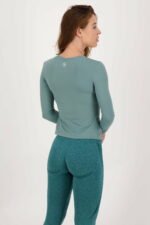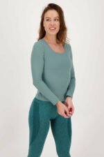 Ein bequemes langärmeliges Oberteil. Die Passform um den Bauch herum ist nicht sehr eng. Die Passform und der dehnbare und weiche Stoff sorgen für ultimativen Komfort. Auf geht's zum Training!