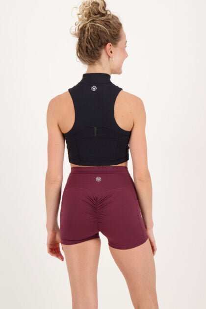 I love me some scrunch in deze shorts! Het geeft me net dat kleine extra accent om te showen waar ik voor werk in de gym. Ik vind het fijn om te trainen in donkerdere kleuren: die laten me meer empowered en veilig voelen tijdens mijn high intensity trainings. Channeling: Lara Croft.