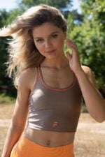 Grab your shine with our unique and trendy contrast line! The line is specially designed and produced by FITT in Europe and consists of high waist leggings with matching top available in 4 colours. The beautiful metallic taupe colour has contrasting seams. The top has removable pads and can therefore be worn without a bra. Which contrast set will you go for?