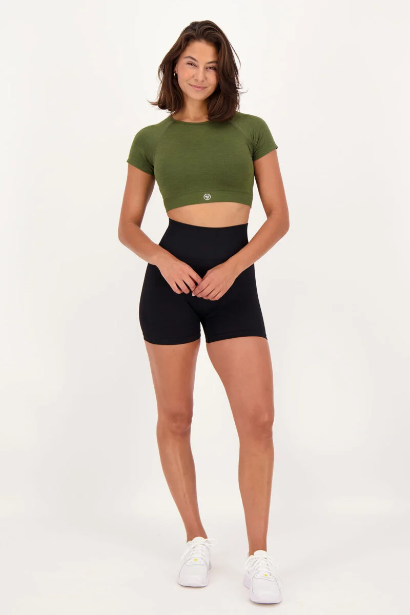 The Smile Scrunch Shortis an essential item in your sports wardrobe! With its super stretchy fabric, high waistband and unique scrunch and contour lines, these leggings are perfect for any occasion. The leggings effortlessly mould to your body and accentuate your natural curves, making sure you always look comfortable, whether you're at the gym, doing a yoga session or just completing your everyday outfit. Thanks to the tight fit and detailed contour lines, these leggings not only feel comfortable but also look stylish. It is the perfect blend of convenience and fashion. Whether you go for an intense workout or a casual look, the Smile Scrunch Short offers you freedom of movement, convenience, a trendy look and ensures you can continue your happy lifestyle. How will you style it?