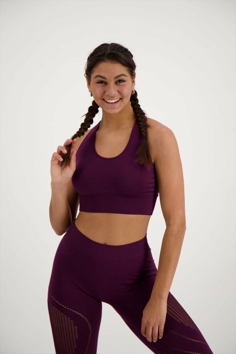 This seamless sports bra has a slightly longer length, making it great to wear as a top. Features removable pre-shaped padding and a nice wide ribbed waistband. The racerback with multiple straps creates a trendy and decisive look. Eye-shaped details are incorporated on the sides and back, this gives extra breathability. Together with the moisture-wicking fabric, this top is therefore ideal for killing your workout to the hilt while still looking great.