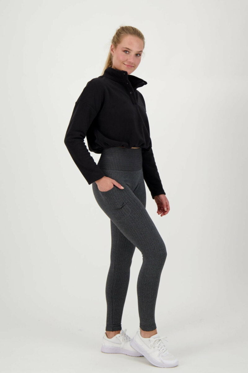 Hello, gebreide fashion legging! Deze stijlvolle legging is zowel in het dagelijks leven als tijdens een training te dragen. Een enorm comfortabel gevoel dankzij de brede en stevige high waist tailleband en de extra zachte stof. Het zakje op het rechterbeen en de modieuze visgraad patroon maakt hem uniek. Vanaf nu kunnen we dus écht all day, every day stijlvol door het leven in FITT ladies!