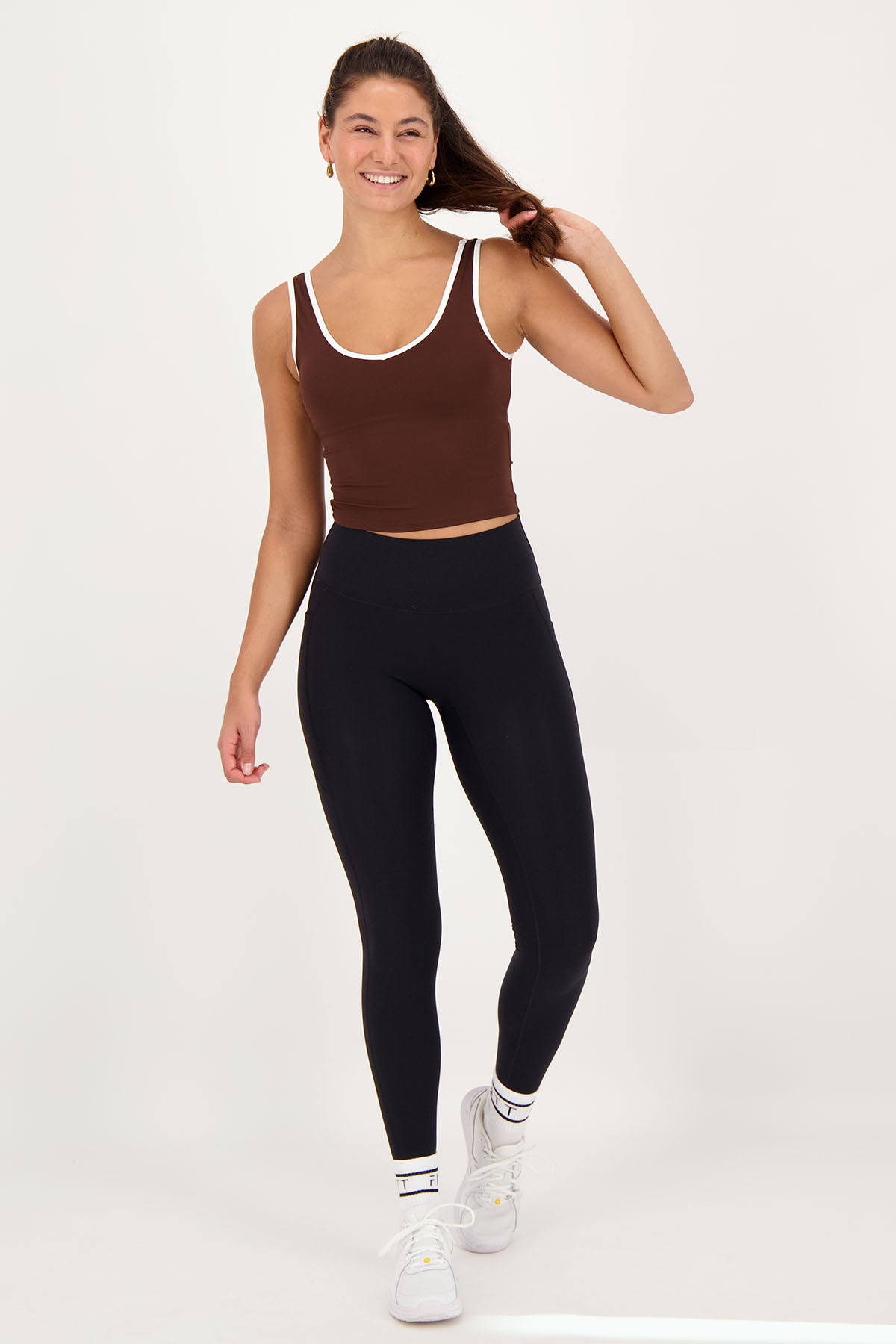 De Contrast Tanktop is de perfecte combinatie van sporty en classy. De zachte, stretchy stof vormt zich naar je lichaam en biedt optimaal draagcomfort tijdens het sporten of je dagelijkse look. De witte contrastranden geven deze top een frisse en opvallende uitstraling. Of je nu gaat trainen, wandelen of gewoon een casual outfit samenstelt: deze top tilt elke look naar een hoger niveau. Combineer met een legging of denim voor een effortless stijlmoment.