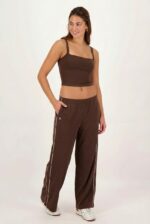 De Fitt retro stripe jogger brengt de perfecte mix van comfort en stijl. Gemaakt van hoogwaardig katoen met een zachte binnenkant voelt deze broek stevig maar soepel aan. De witte strepen aan de zijkant geven de jogger een sportieve retrolook die perfect is voor casual dagen, een festivalfit of onderweg naar je workout. De elastische tailleband met trekkoord zorgt voor een fijne, persoonlijke pasvorm. Combineer hem met een cropped top of vest voor een moeiteloze sporty look.
